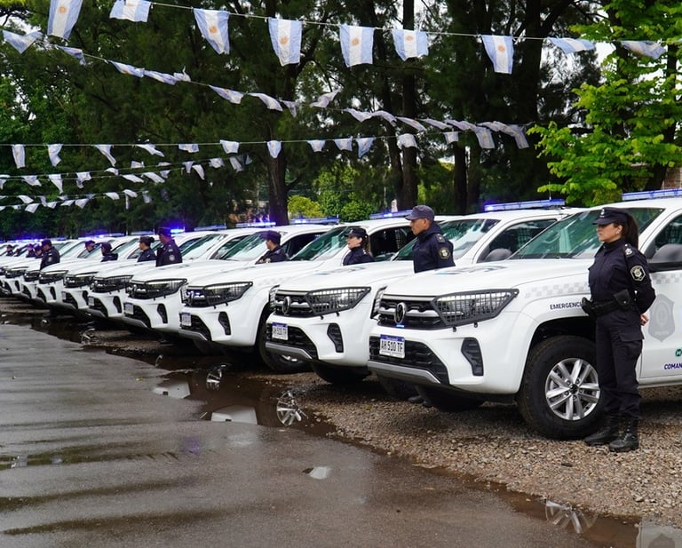 El Intendente Gustavo Menéndez encabezó la revisión protocolar de los 30 nuevos patrulleros que el Gobierno de la Provincia de Buenos Aires destinó para Merlo en el marco del plan provincial de fortalecimiento de la seguridad.